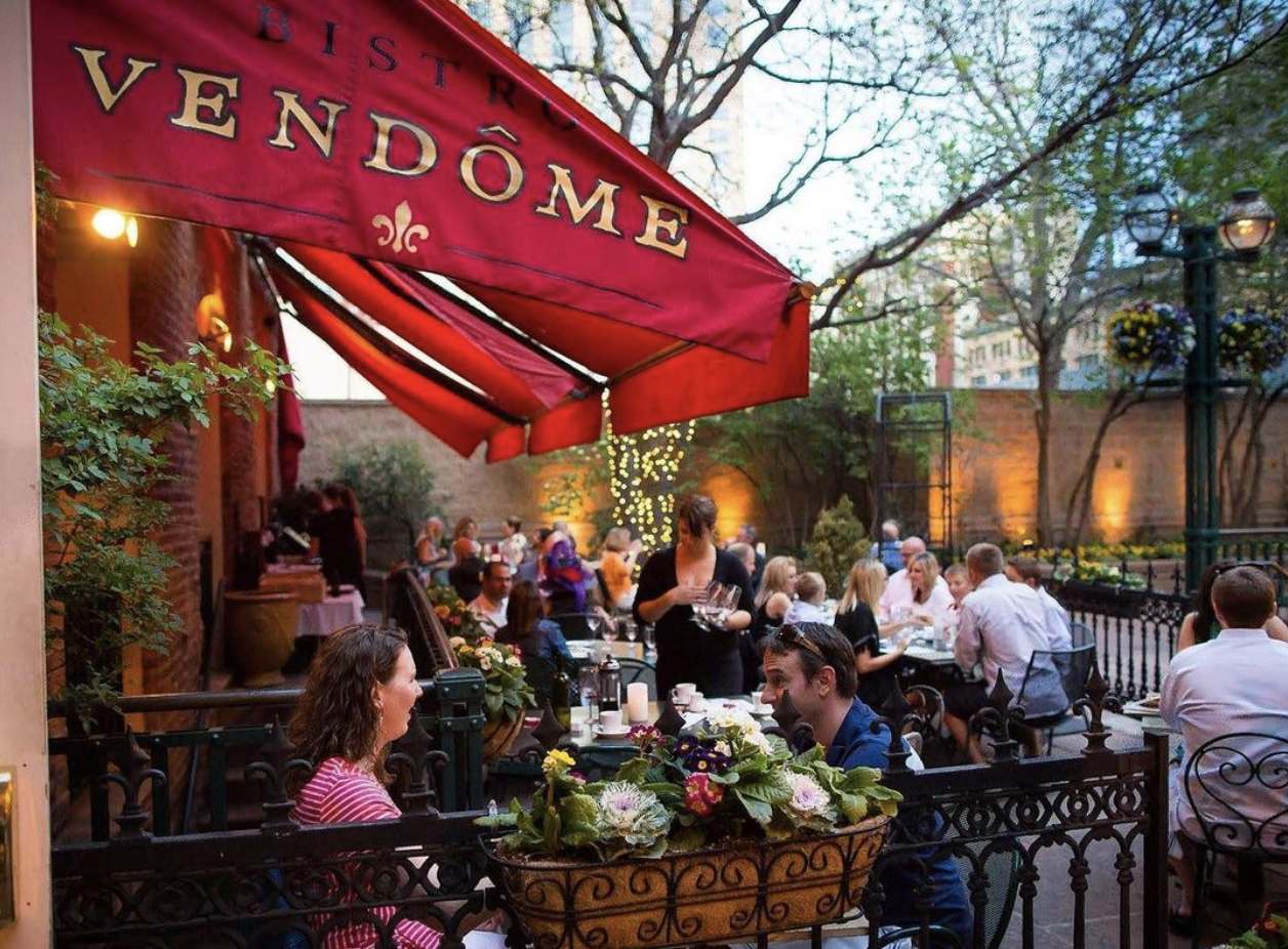 Explore Bistro Vendôme's Happy Hour in their beautiful garden. You can enjoy a bottle of wine and split a cheese board before dinner (Photo by Resse St. Germaine).