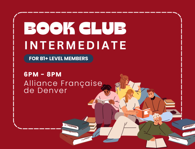 This book club is designed for those who are looking to deepen their language skills while reading and discussing French Books. We invite all B1+ level members of the Alliance Francaise de Denver and interested in participating in discussions about French literature to join our intermediate level French Book Club! Whether you are a seasoned reader or new to French books, your insights are valuable to our conversations. Our upcoming meetings will focus on a selection of authors and books that will be easy to read yet will provoke engaging discussions. THIS IS NOT A FRENCH CLASS.